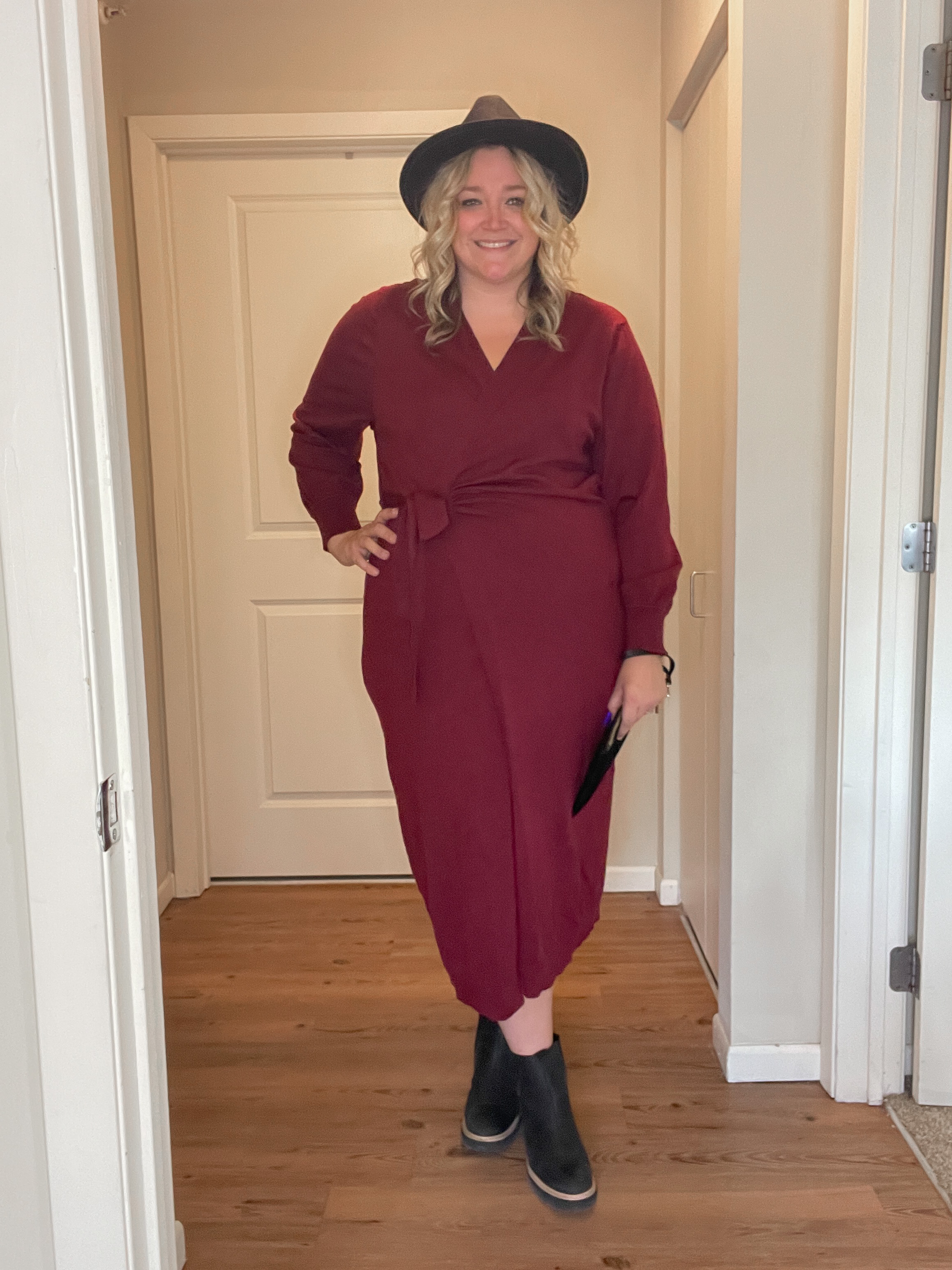 I am on the hunt for the perfect sweater dress. I love the burgundy color of this one.
