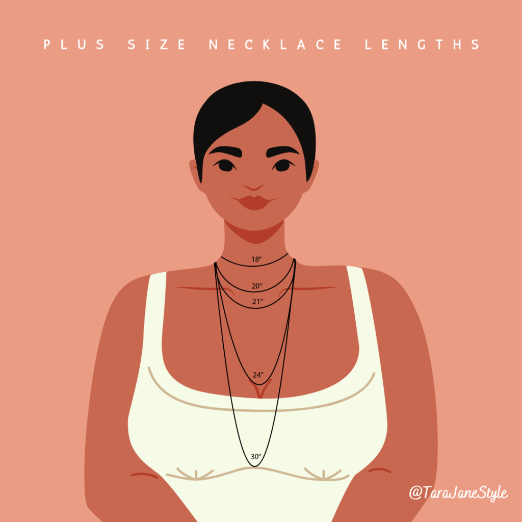 Personally, my preferred necklace length is 19-21″ because I love that it hits at right around my collarbone, but the important thing to know is that the the shortest length I can comfortably wear is 18″ vs. the 16″ length that is shown on the commonly used necklace length chart.